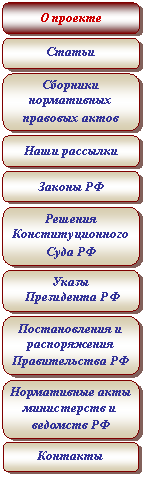 перешагнувших порог зрелости людей, желающих получить диплом юриста. Но, впрочем, право – сложная материя. Сложная даже для дипломированных и многоопытных профессионалов. Одной из сложностей является множественность норм права, которые в своей совокупности и составляют законодательство и другие нормативные правовые акты. Действующие российские законы и иные нормативные правовые акты как безбрежное море, в котором очень непросто ориентироваться. Для юриста, руководителя, предпринимателя, студента-юриста, а также для других лиц, которым в повседневной деятельности приходится сталкиваться с юридическими вопросами, очень важно уметь отслеживать процесс нормотворчества, знать об изменениях законодательства. На практике это по разным причинам вызывает определенные трудности. И здесь информационно-правовое издание "Юридический журнал" может оказаться полезным. Основу "Юридического журнала" составляют обзоры федеральных законов, решений Конституционного Суда РФ, указов Президента РФ, нормативных правовых актов Правительства России и постановлений Пленума Верховного Суда РФ. "Юридический журнал" стремится к максимальной полноте и оперативности отражения в своих обзорах новых нормативных правовых актов России и правовых актов судебной власти Российской Федерации. Преимущество нашего интернет-издания заключается в особенности расположения материалов на сайте. При составлении обзоров новых нормативных актов и правовых актов судебной власти мы следуем принципу хронологической последовательности. Таким образом, зайдя на наш сайт, можно, не затрачивая особых усилий, просмотреть динамику развития действующей нормативной базы на сегодняшний день или заглянуть в обзоры за прошлые месяцы или годы. Все входящие в обзоры федеральные законы, иные нормативные правовые акты, решения Конституционного Суда РФ и постановления Пленума Верховного Суда РФ были опубликованы в "Российской газете". Публикация текстов нормативных правовых актов Российской Федерации в "Российской газете" является их официальным опубликованием. Каждый